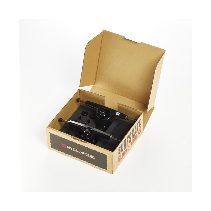 Un Surf Truck basado en el skate, con mucho giro y muy estable al mismo tiempo gracias a una geometría mejorada. Fácil de usar desde el día 1 (a diferencia de los ejes de surf tradicionales que son muy inestables en el eje delantero) y adaptables a cualquier tabla.