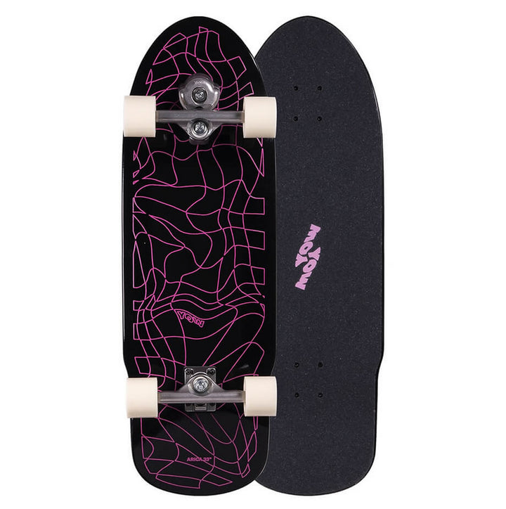 La Arica 33″ se mantiene en su composición siendo una de las más elegidas por nuestros riders y clientes gracias a su base ancha, cóncavo pronunciado y rockers en nose y tail. Sus dimensiones ofrecen una práctica polivalente en todo tipo de terrenos. Su corta distancia entre ejes (17″) permite realizar giros profundos y cerrados. Montado con el sistema Meraki (S5) y ruedas Ura 66x51mm 78A para máxima precisión en giros y antenas.